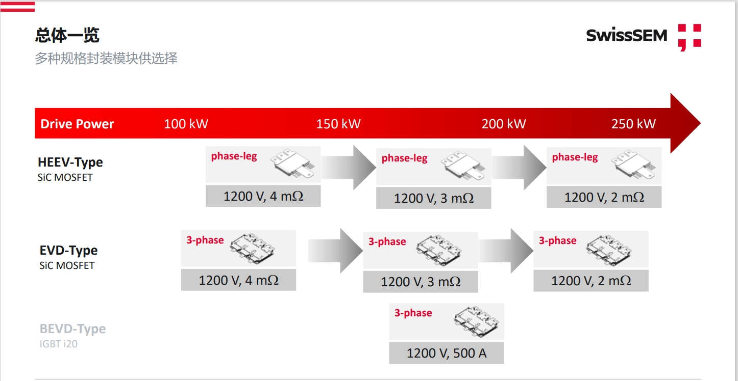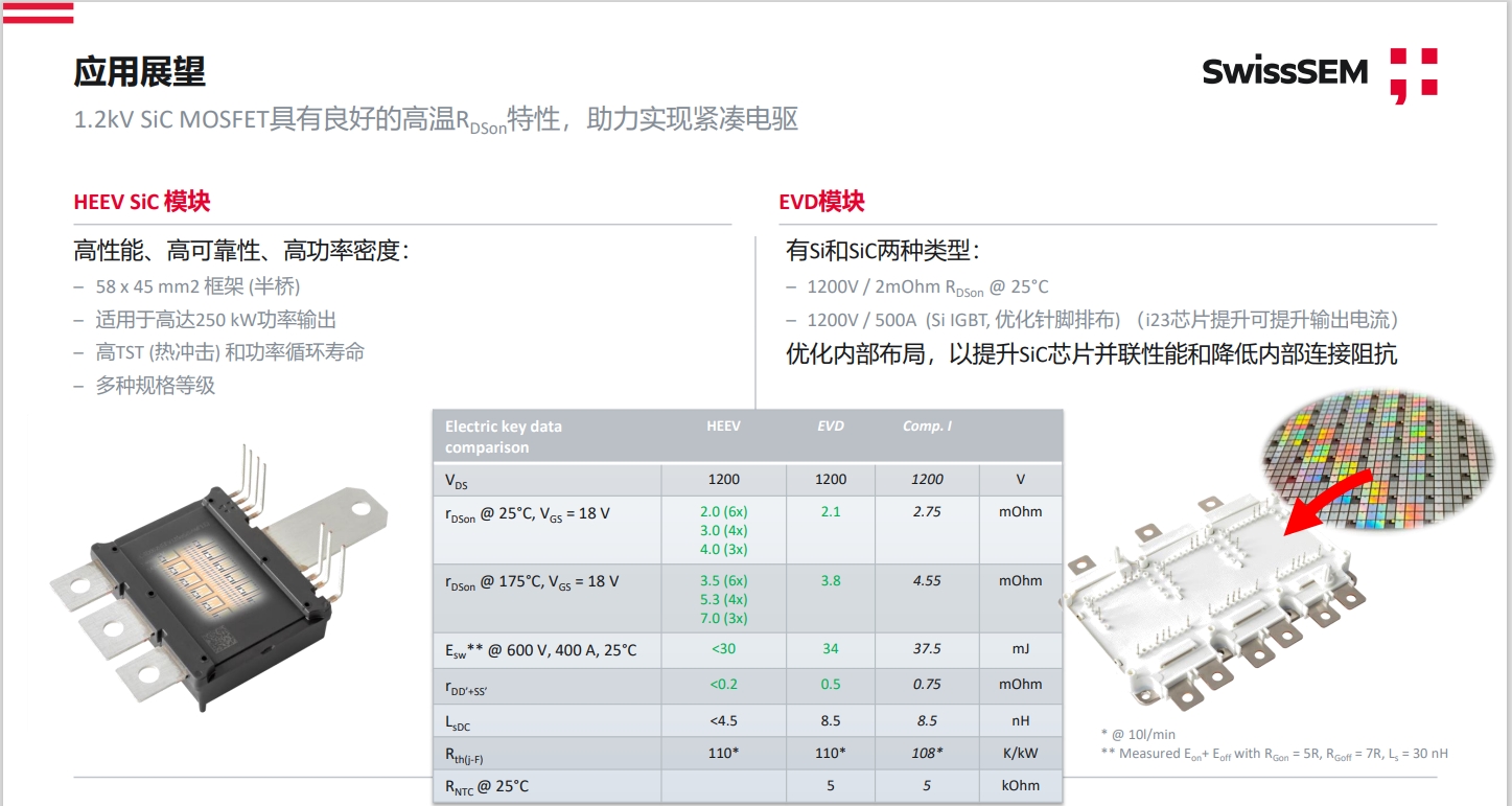 EVD封装SiC模块的产品可以让客户能够最大可能的借鉴既有Si产品的系统设计,同时可以有灵活的商务供应。