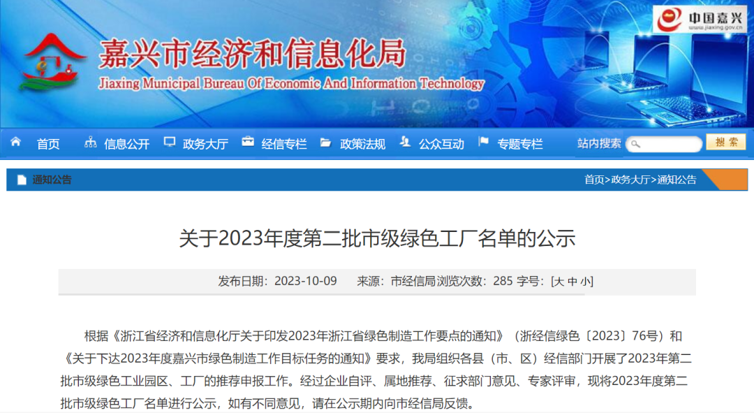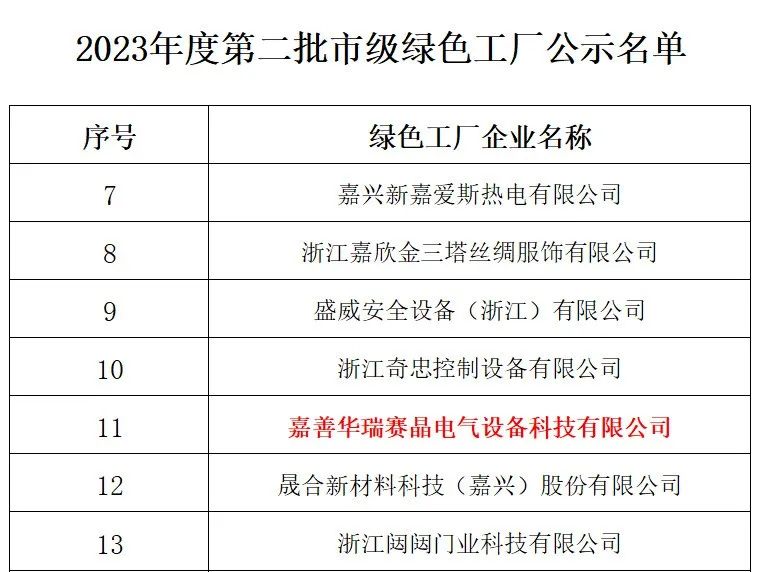 浙江省嘉兴市经济和信息化局日前公布了《2023年度第二批市级绿色工厂》的公示名单,K8凯发官网网址成员企业 嘉善华瑞赛晶电气设备科技有限公司荣誉上榜,获评“绿色工厂”称号。这是对赛晶坚持践行“以科技创新,推动绿色能源发展”的认可与肯定,更是全方位彰显了赛晶的“绿色智造实力”。