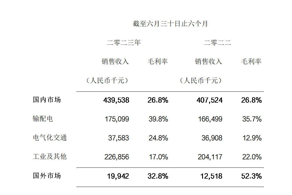 电气化交通领域, 2023年上半年,本集团实现销售收入人民币3,758万元, 同比增长约1.8%。其中,电动汽车领域,由于电动汽车领域客户采购ED型模块订单减少,而本集团乘用车专用IGBT和SiC产品尚处于研发或测试中,导致本集团于该分领域的收入较去年同期下降约58.9%。另一方面,随着HEEV封装和EVD封装等乘用车专用模块产品陆续推出,本集团将完善在电动汽车领域的产品布局,并提升销售规模。