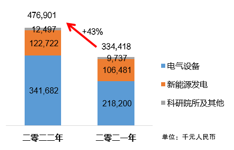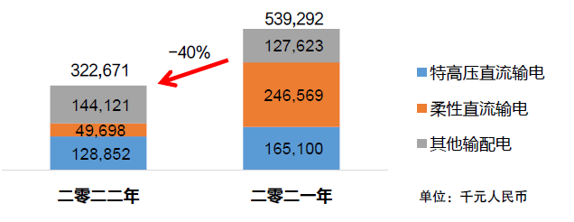 受到疫情等不利因素的影响,包括特高压直流输电工程及柔性直流输电工程在内的高压直流输电领域,电网公司原规划于2022年多个项目均未启动。这导致本集团高压直流输电相关销售收入,较2021年大幅下降57%。虽然其他输配电领域销售收入有所增长,但电网输配电领域综合销售收入,较2021年仍然下降40%。
