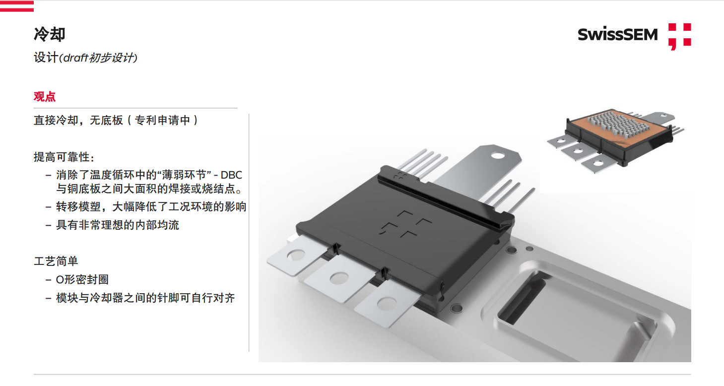 HEEV封装SiC模块是专为实现高效率电动汽车应用而开发,采用低损耗的SiC MOSFET芯片,以及压注模封装技术,因而能够提升对湿度等恶劣环境的抵抗力。此外,还采用烧结、超声波焊接等多种先进的封装工艺,无基底直接冷却(已申请专利)、钳桥式结构等独特的创新设计;模块更小的体积(体积降低50%)、更低的损耗(连接电阻降低50%)、更高的可靠性(杂散电感降低40%),拥有高可靠性、良好的可控性、相同的额定功率。