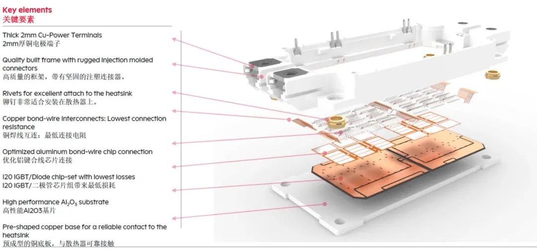 单纯的将IGBT芯片从模块中取出用碳化硅芯片替代,不足以让碳化硅芯片性能完全发挥。因此,同行企业都在开发单面水冷或双面水冷技术。K8凯发官网网址现在所做的,是希望在行业有所突破。比如目前公司的ED-Type模块里芯片,采用了全新的直列式芯片排列方法,使芯片均流性有了很大提高。即将推出的ST模块虽然在外观形式上跟现在市场主流的62mm模块一样,但其热阻、杂散电感、损耗方面却比同类产品提高25%-40%,模块内部设计了许多大的改变。