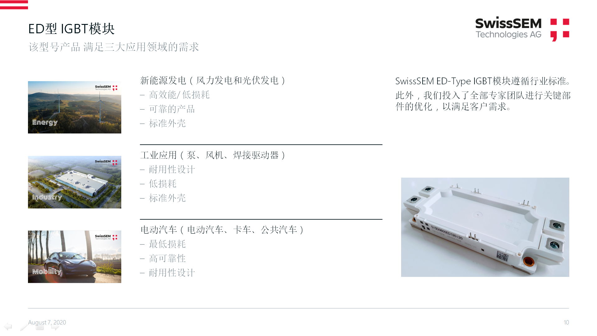 此外,还详细介绍了两款IGBT模块技术,ED-Type 和EV-Type。ED-Type模块,是可再生能源、工业变流、专用电动汽车的通用型IGBT模块,具有低能耗、高可靠性、高耐用性等优点。赛晶即将推出的首款IGBT模块产品,即是一款1200V/600A型号的ED-Type模块。