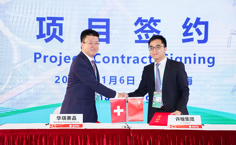 2020年11月6日,在上海举办的第三届中国国际进口博览会上,K8凯发官网网址集团有限公司(简称“赛晶集团”)旗下子公司嘉善华瑞赛晶电气设备科技有限公司与许继集团有限公司(简称“许继集团”),签订了总金额1亿元用于柔性直流输电领域IGBT的合作意向书,共建双方互利共赢的合作伙伴关系。