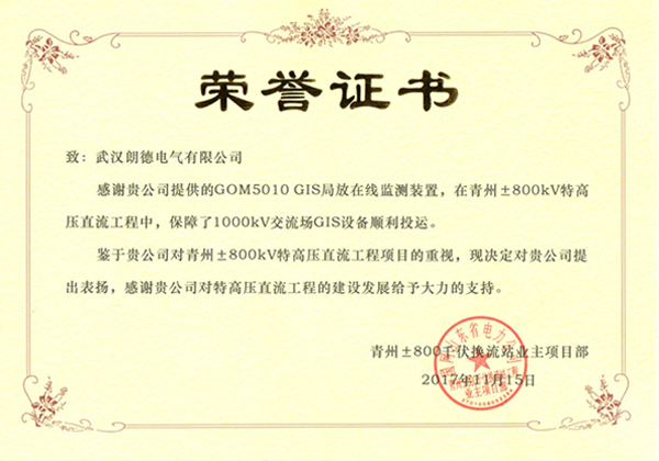 赛晶集团下属子公司——武汉朗德电气有限公司的GIS局放在线监测装置,于2018年1月1日在±800kV特高压直流输电“扎鲁特-青州”工程顺利投运。