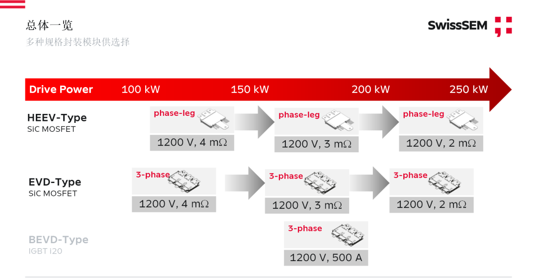 此外,采用此SiC MOSFET芯片,赛晶还推出了多规格、型号的车规级、高性能HEEV封装、EVD封装SiC模块。