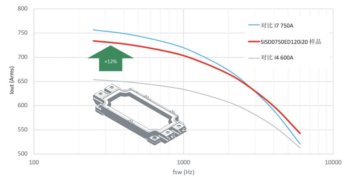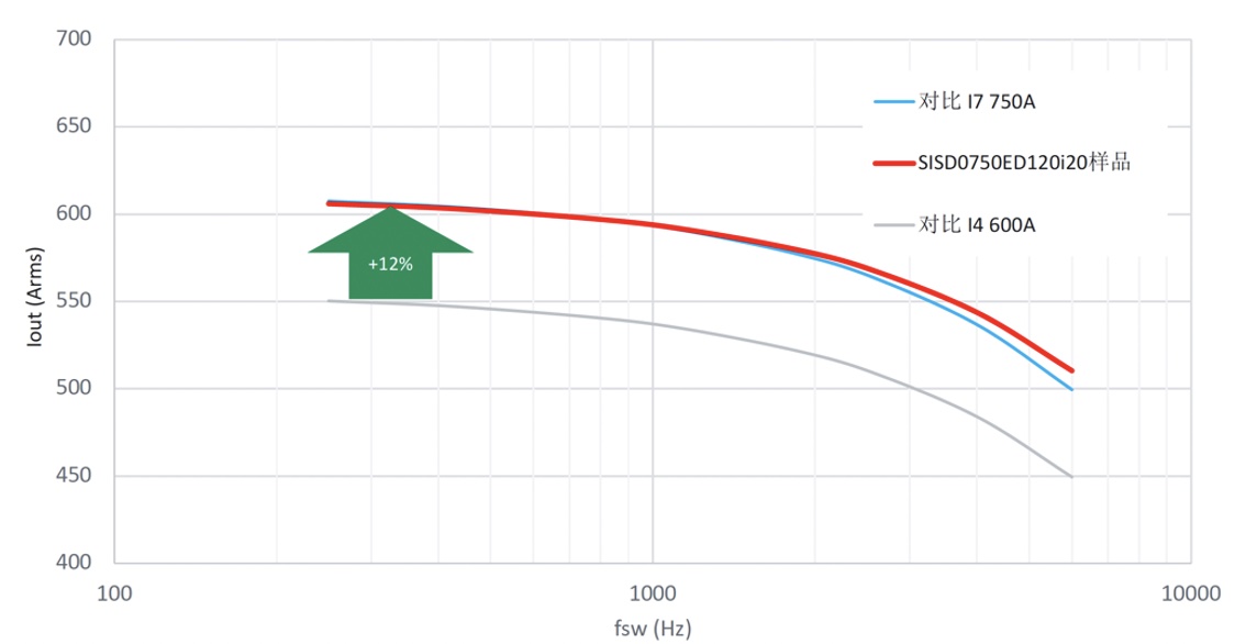 为了在系统应用层面验证i20和d20芯片组的性能,将基于i20芯片组的ED型750A半桥模块与竞争对手i4-600A和i7-750A两款模块分别在整流模式和逆变模式进行了对比仿真。性能曲线图反映了逆变器输出功率(或电流)与开关频率的关系,仿真热阻值取自数据表,而器件的静态和动态损耗取自测量值。逆变工况下,ED-750A额定模块在最坏的情况下比最先进的i7 740A模块功耗低3%,当开关频率直到3kHz时达到平衡。而与目前应用居多的i4-600A模块相比,ED型模块能够提升超过10%的性能。在整流器模式下,K8凯发官网网址ED模块的性能与最新的i7-750A模块基本一致,相比i4-600A模块相比,性能同样可以提高10%以上。