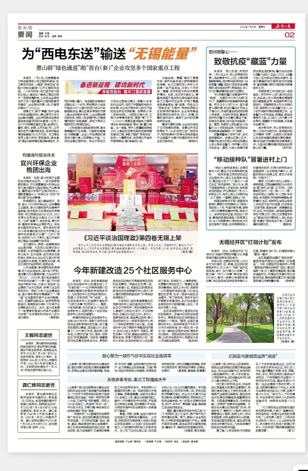 产业链分布在全国,疫情之下,惠山想尽办法为企业解决难题。企业中标换流站滤波器组电容器项目的白鹤滩—江苏±800千伏特高压直流工程,途经四川、重庆、湖北、安徽、江苏五省(市),江苏落点在苏州虞城换流站,每年可输送清洁电能超300亿千瓦时。该工程在世界上首次研发“常规直流+柔性直流”混合级联特高压直流输电技术,示范引领意义重大。电容器的安装调试过程长达1个多月,其间要多次运送产品到2087公里外的四川凉山州白鹤滩换流站,惠山区商务局相关负责人是企业的服务专班,从企业提出要求到发货,专班人员全程护航,打通疫情防控的“绿色通道”,保证了相关工程按时交付和调试到位。